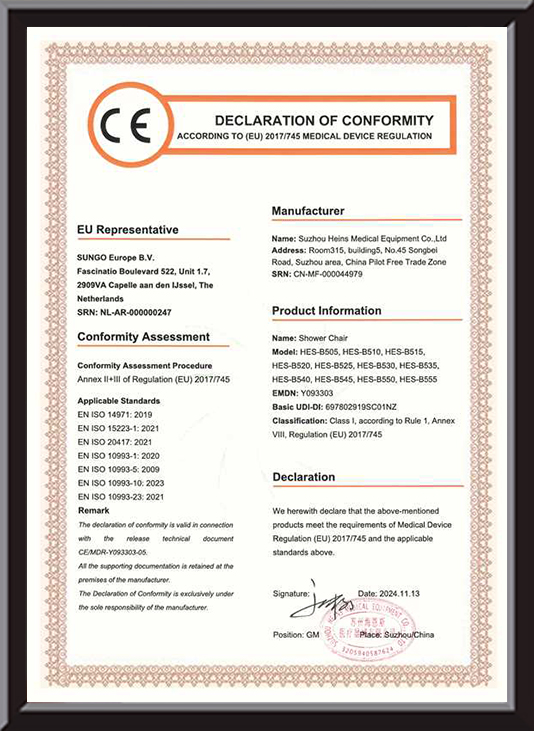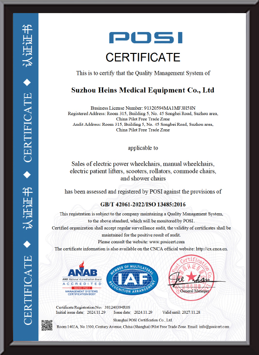Antibakteriell behandling: För att ytterligare skydda äldres hälsa har Heins Medical Equipment genomfört speciell antibakteriell behandling på armstödsmaterialet. Under materialproduktionsprocessen tillsätts högeffektiva antibakteriella medel, som effektivt kan hämma tillväxten av vanliga bakterier och mögel. Efter testning av auktoritativa organisationer är bakterietillväxthastigheten på armstödets yta betydligt lägre än för vanliga material. Denna funktion hjälper inte bara till att hålla armstödet rent och hygieniskt, utan minskar också risken för att äldre smittas av bakterier på grund av kontakt med armstödet och är särskilt lämplig för äldre med relativt svag immunitet.